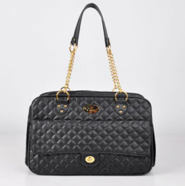 Available in a sleek black color, this stylish bag features a modern checkered design that stands out. It's the perfect accessory for trendy pet owners who want to make a statement while ensuring their pets feel secure and comfortable.