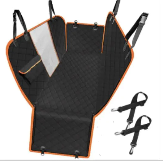 his premium pet seat cover offers a secure, comfortable space for your dog in the back seat. The visual mesh window provides airflow and helps reduce travel anxiety by allowing your dog to see you. Made from durable, waterproof fabric, it protects against dirt, hair, and scratches. Anti-slip backing and integrated seatbelt openings ensure stability and safety, while adjustable straps and side zippers make it easy to install and clean. Ideal for medium to large dogs, this cover is compatible with most vehicle models for stress-free travel.